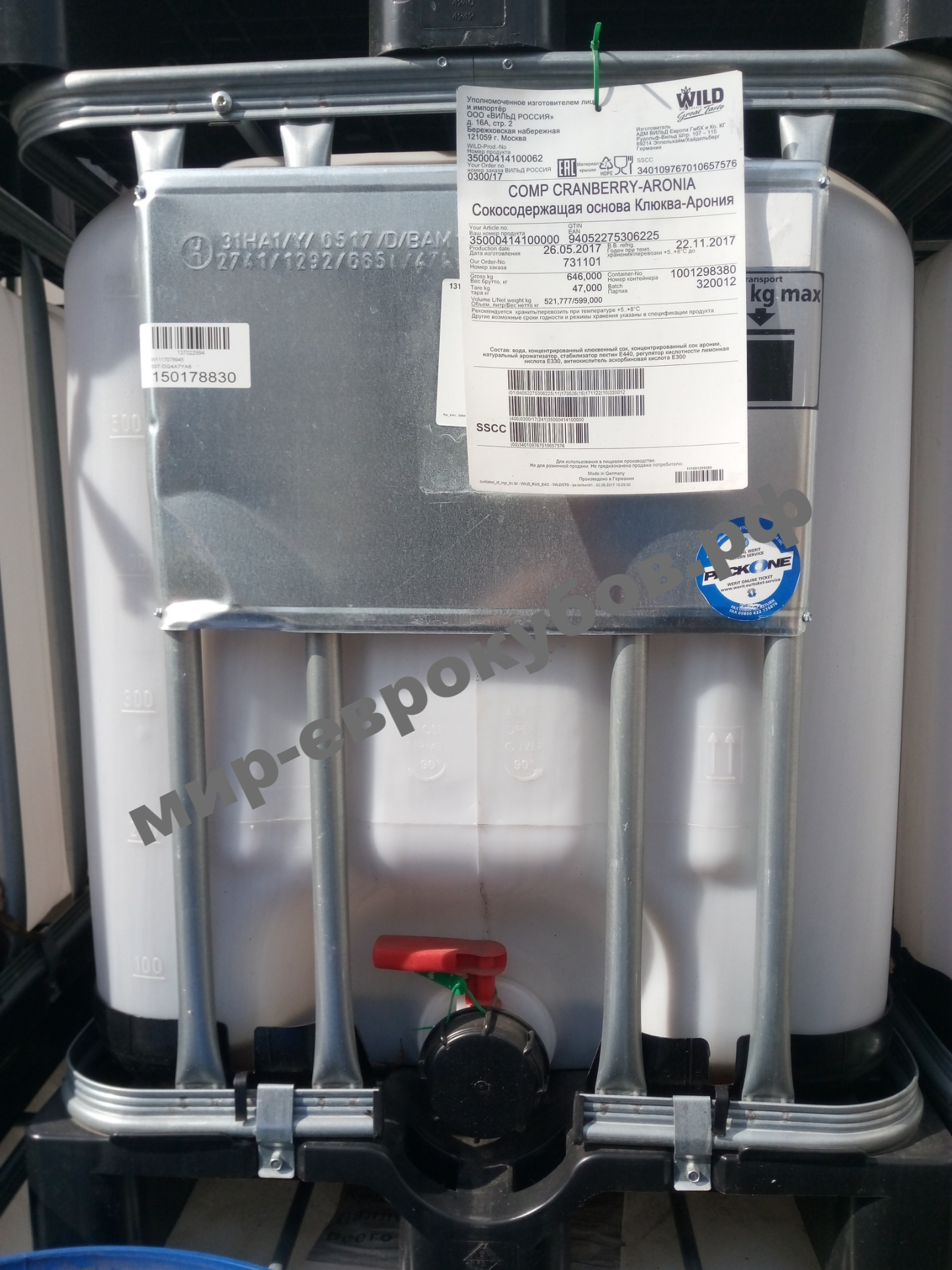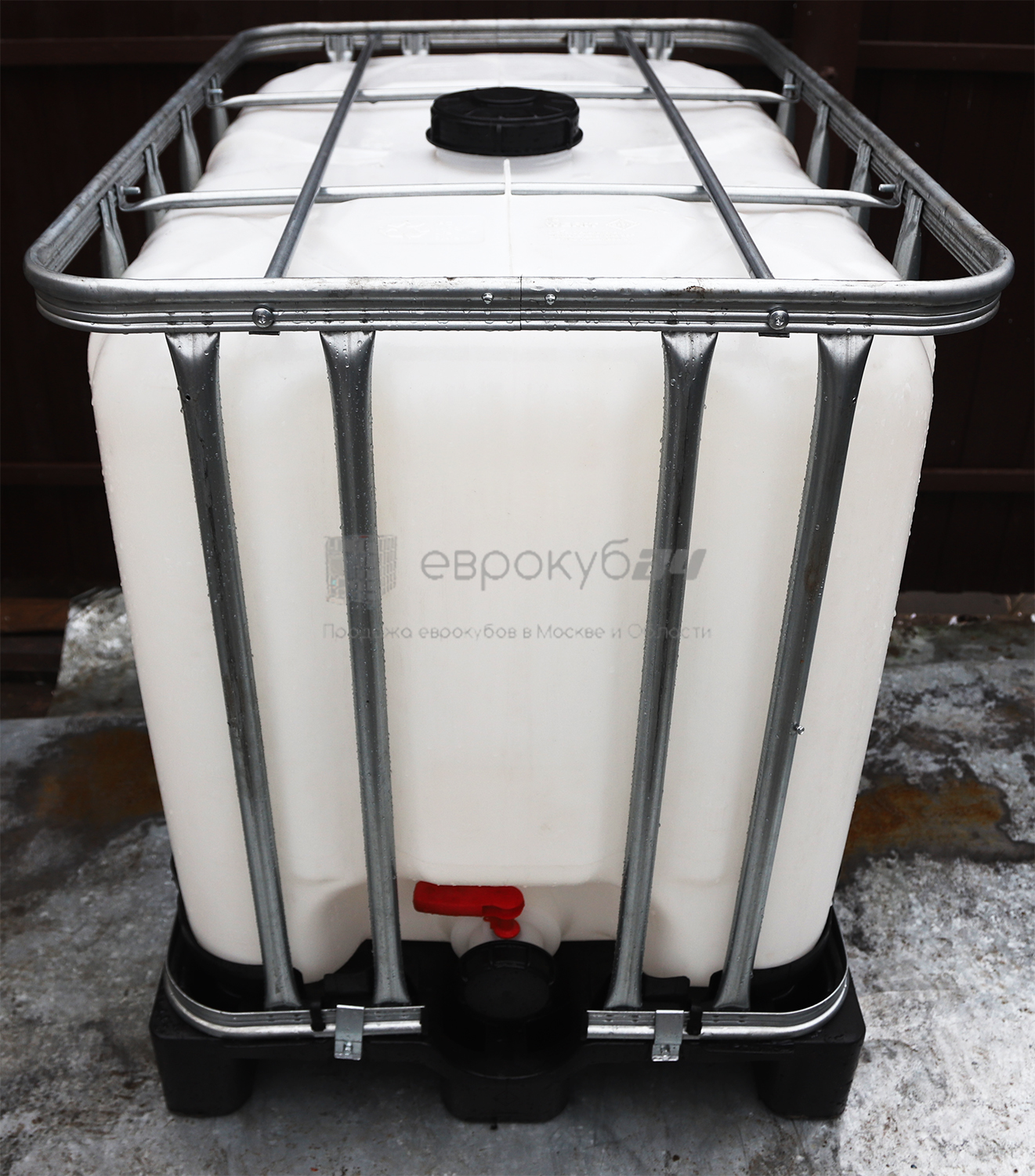 Жёсткая наружная упаковка (стальная обрешетка, поддон из дерева, металла или пластика), в которую помещена пластиковая емкость («колба», «бутыль») объемом 1000 литров. Имеет заливную горловину с крышкой и сливной кран снизу.