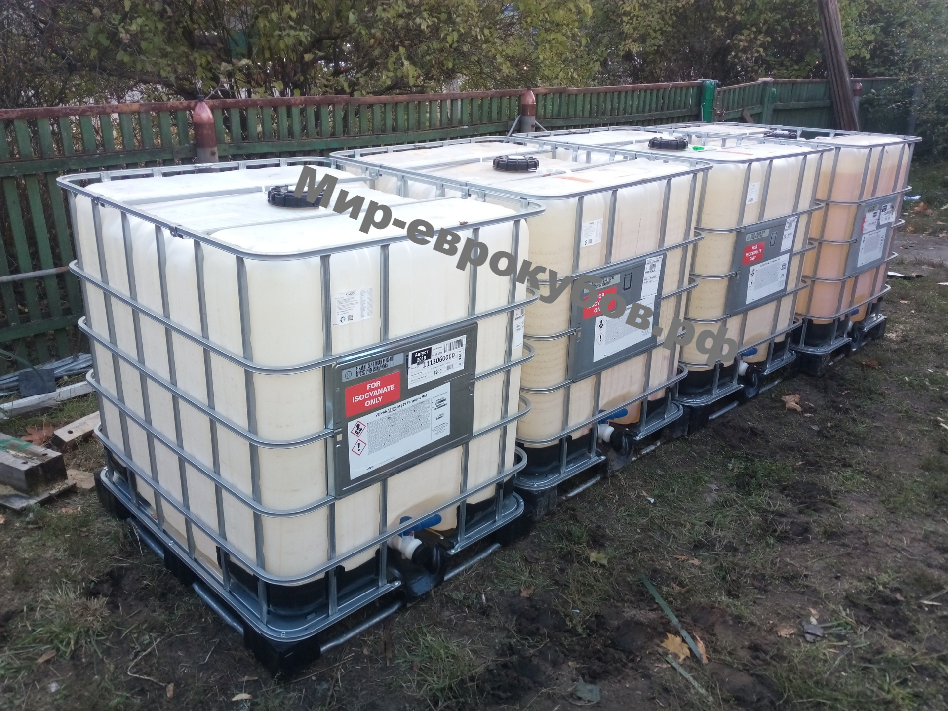 Еврокуб пластиковый, из-под изоцианата и тех. масел. Кубик почти новый, в идеальном состоянии, внутри 2-5 литров изоционата (не взаимодействует с водой и ДТ).