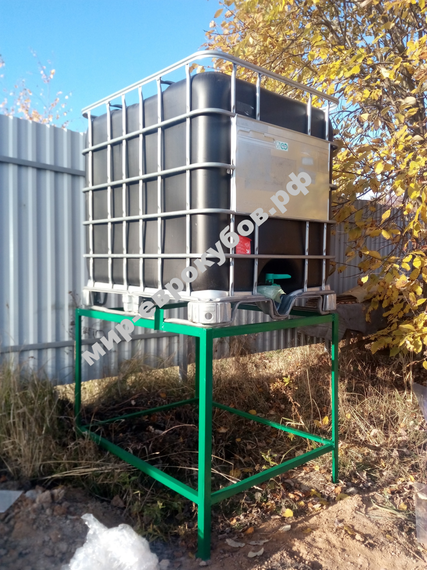 Цена снизу указана для: подставки 1 метр + переходник 100 мм на садовый шланг 3/4 дюйма + чистый черный еврокуб на металлическом/пластиковом поддоне.