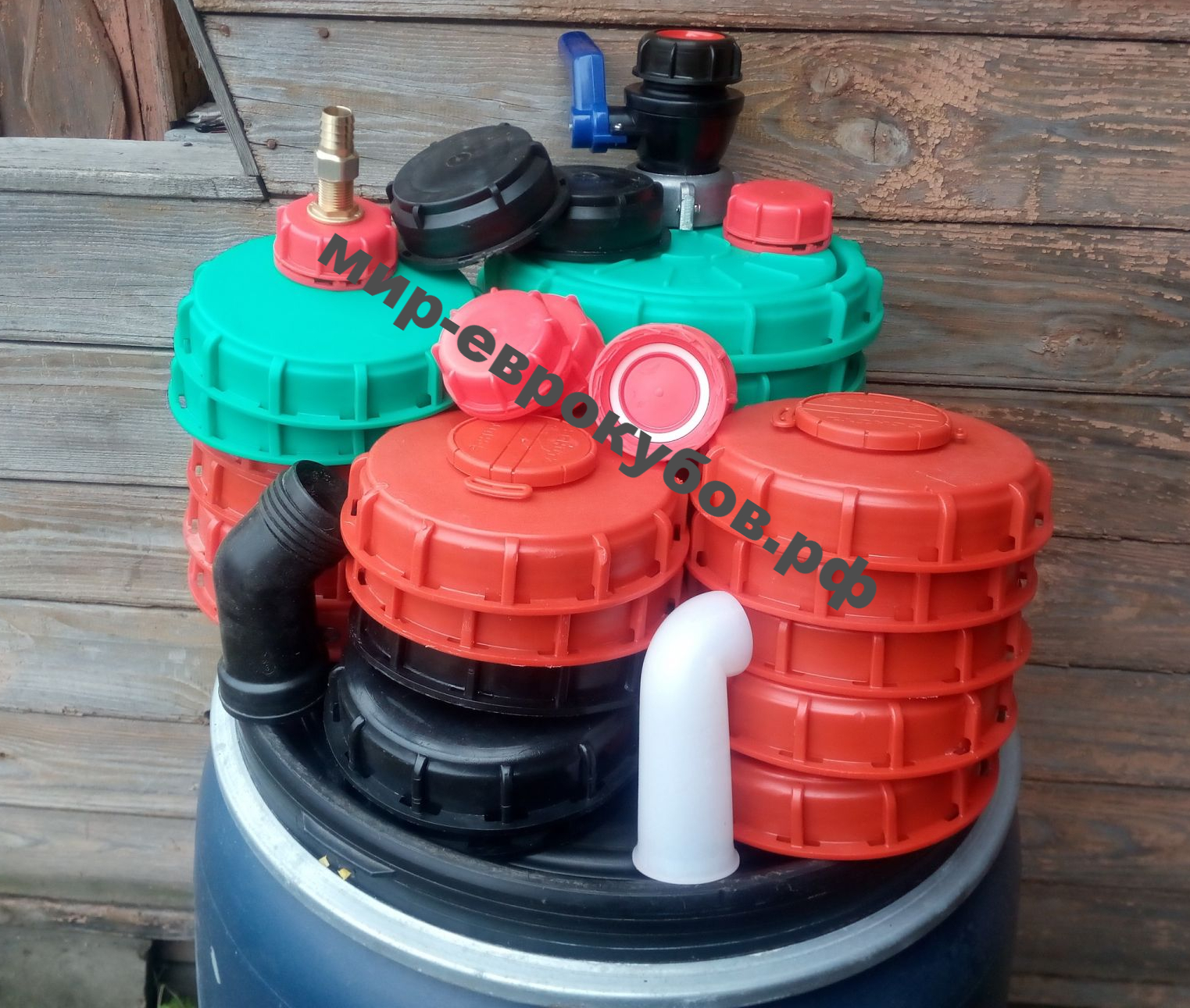 Крышки всех размеров, переходники с крана еврокуба на любой выход (резьба, штуцер, ПНД, и т.п.), аксессуары для полива и подогрева и прочие дополнения к еврокубы для максимальной универсальности емкости.