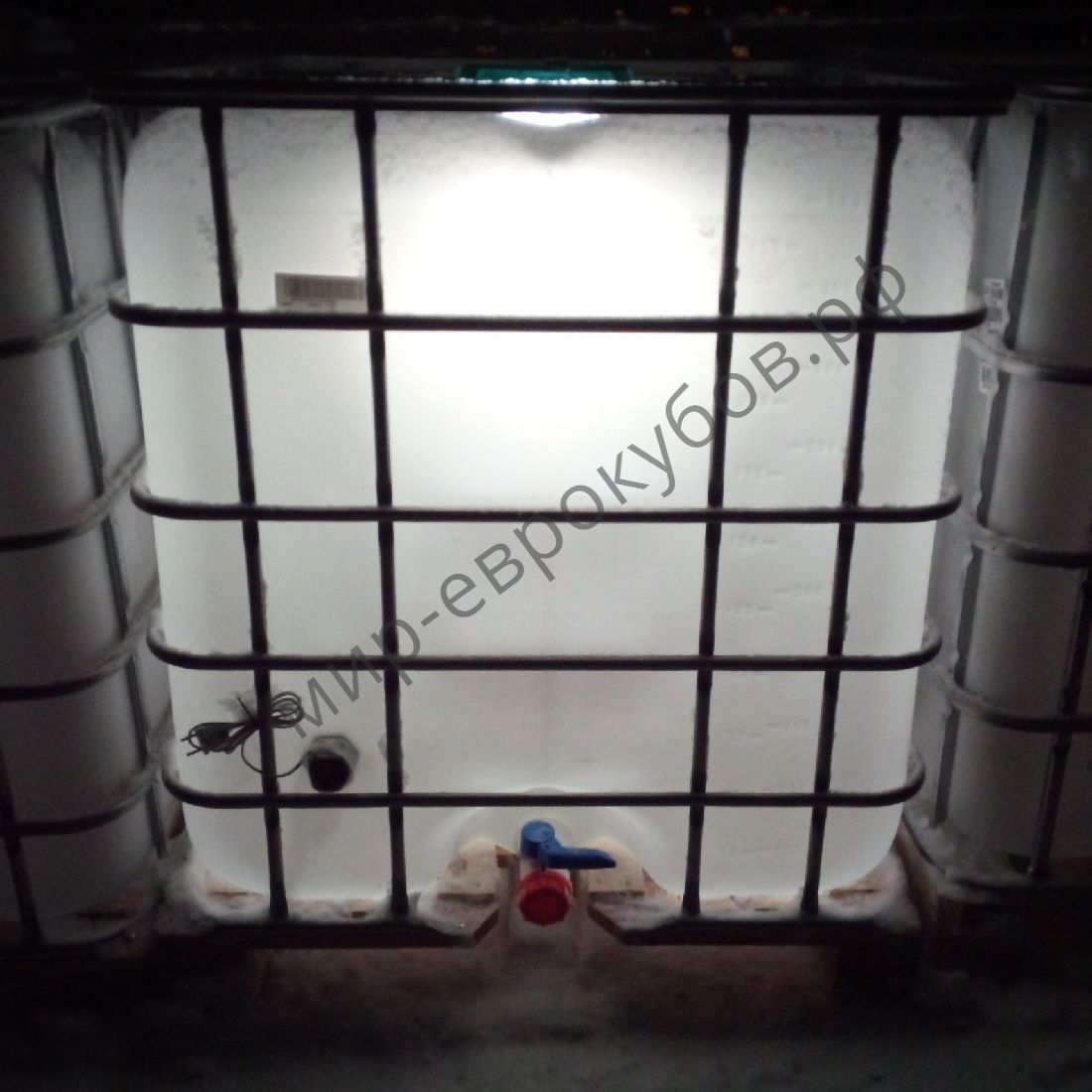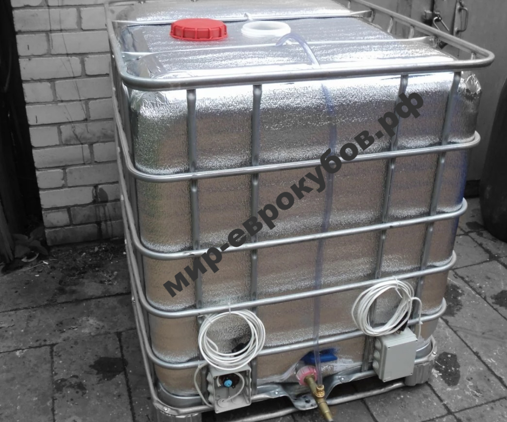 Еврокуб на 1000 литров с обогревом из специально разработанного для еврокуба мате. *Высокая эффективность нагрева. *Отсутствует контакт нагревателя и вещества. *Высокая долговечность и европейское производство. *Мощность - 2.4 кВт.