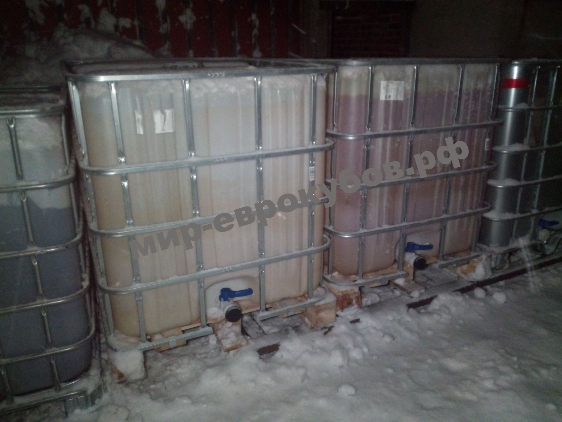 Еврокуб грязный, неотмытый, в разном состоянии, может содержать остатки веществ (не более 50л), в основном отработанное масло, битуум, застывшие смолы. Может иметь различные повреждения обрешетки.