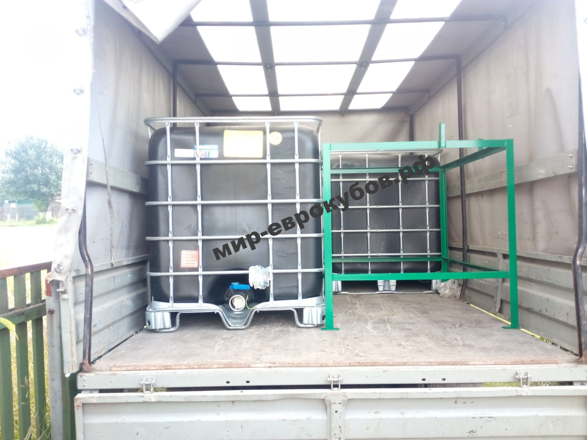 Примерные размеры еврокуба на 1000 л - 1250 х 1040 х 1170 мм